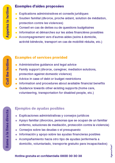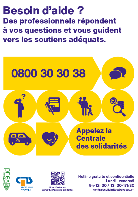 En cas de difficulté dans votre quotidien appelez la hotline de la Centrale des solidarités : 0800 30 30 38